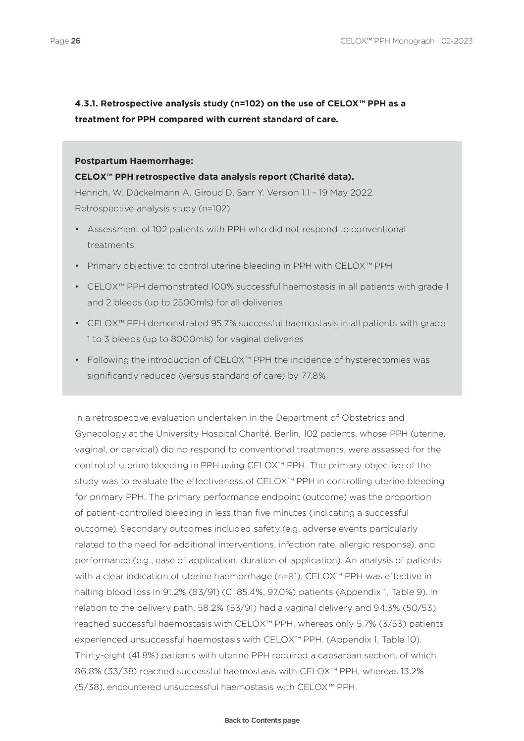 CELOX™ PPH Gauze retrospective data analysis report (Charité data).