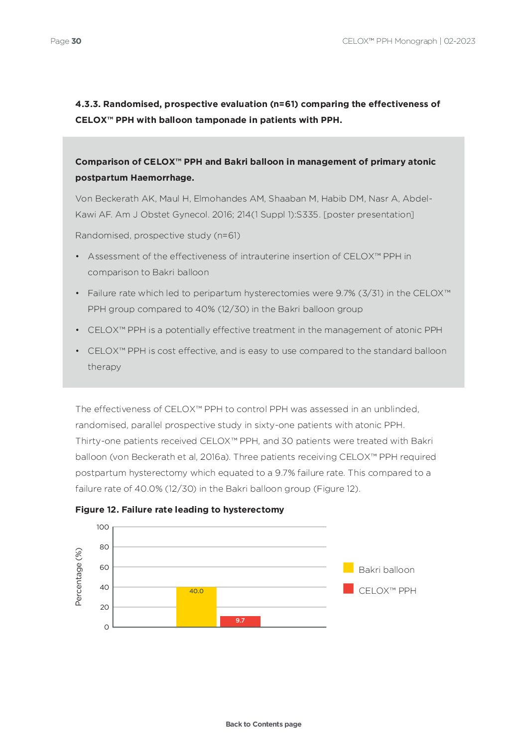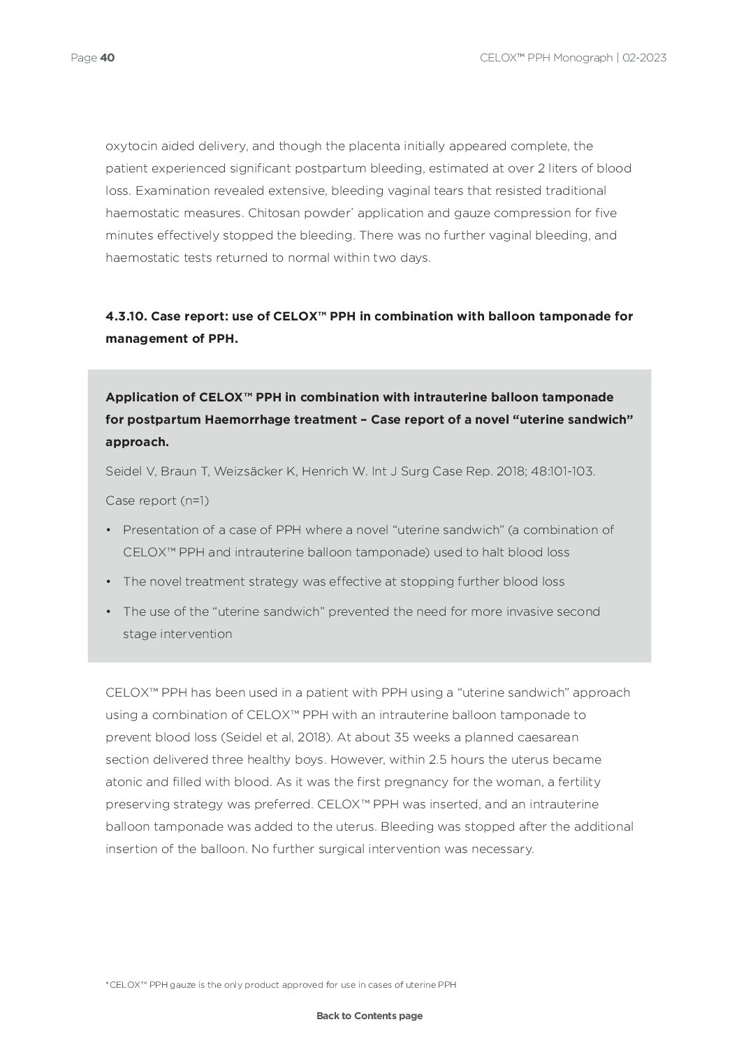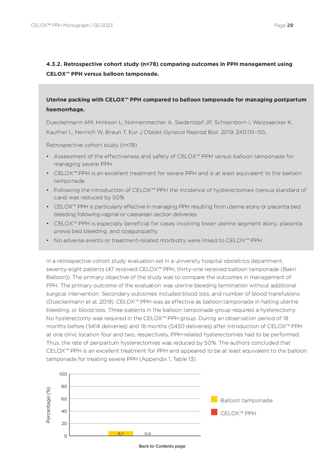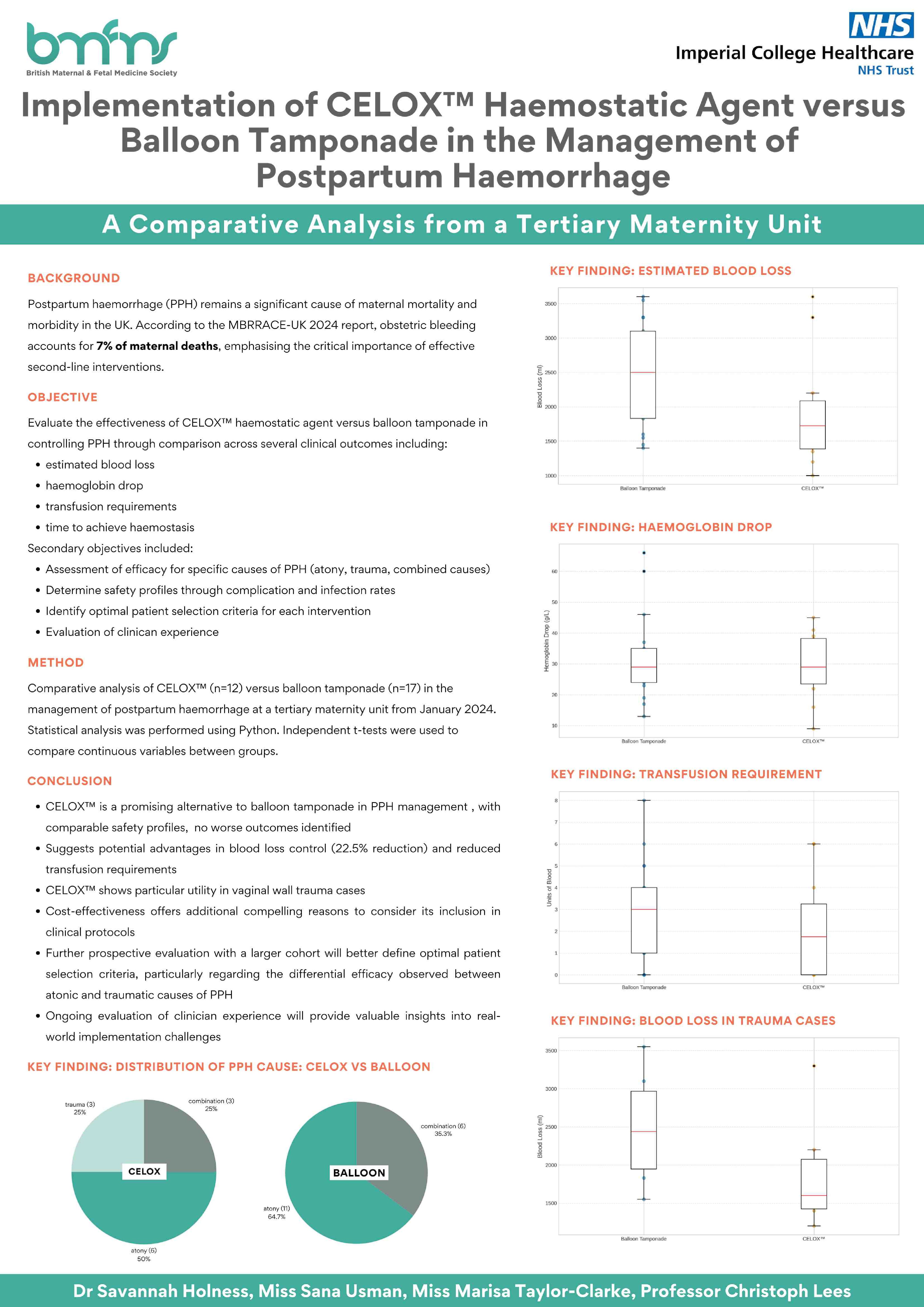 • CELOX™ is a promising alternative to balloon tamponade in PPH management , with comparable safety profiles, no worse outcomes identified