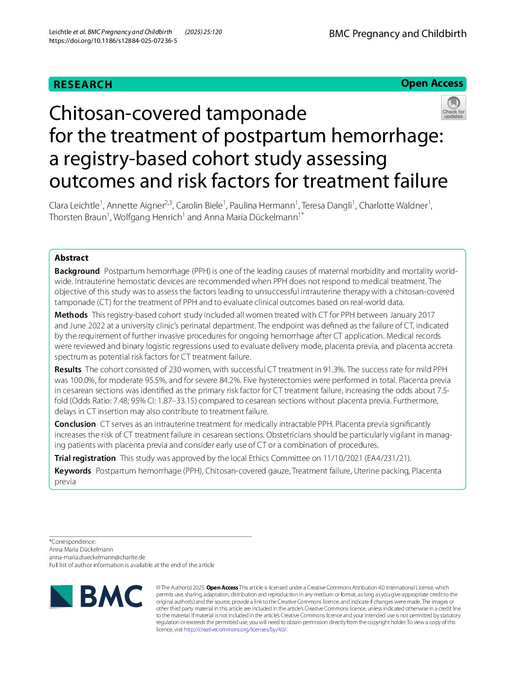Biele C, Radtke L, Kaufner L, Hinkson L, Braun T, Henrich W, Dückelmann AM. J Perinat Med. 2022; 50(8):1078-1086.